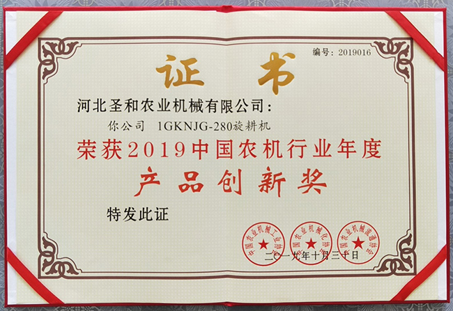 榮獲2019年度產(chǎn)品創(chuàng)新獎(jiǎng)證書(shū)
