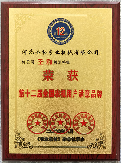 圣和深松機榮獲第十二屆滿意品牌獎牌