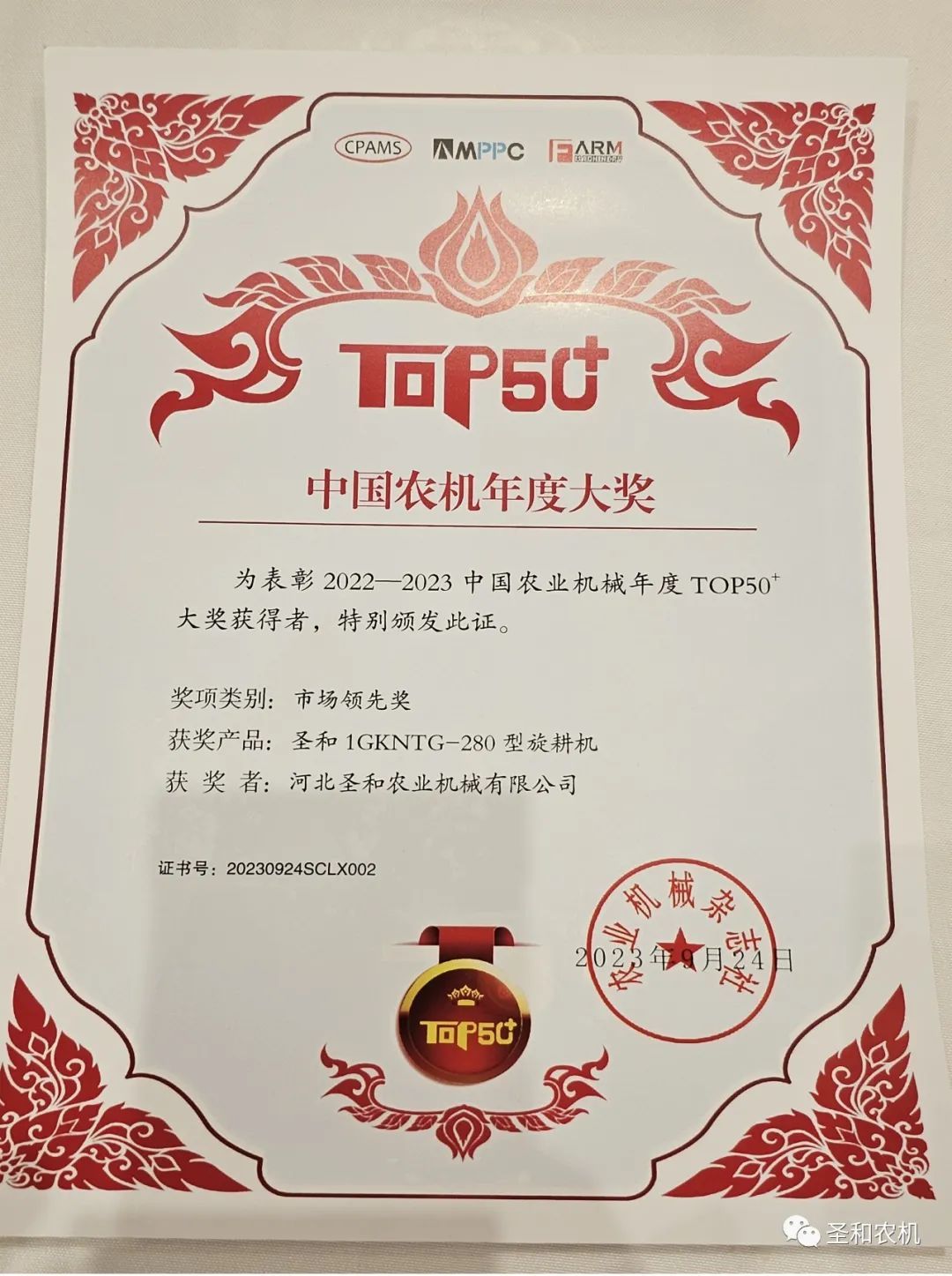 喜報(bào)頻傳獲佳績(jī) 奮楫揚(yáng)帆正當(dāng)時(shí)----圣和牌旋耕機(jī)再度榮獲“市場(chǎng)領(lǐng)先”獎(jiǎng)